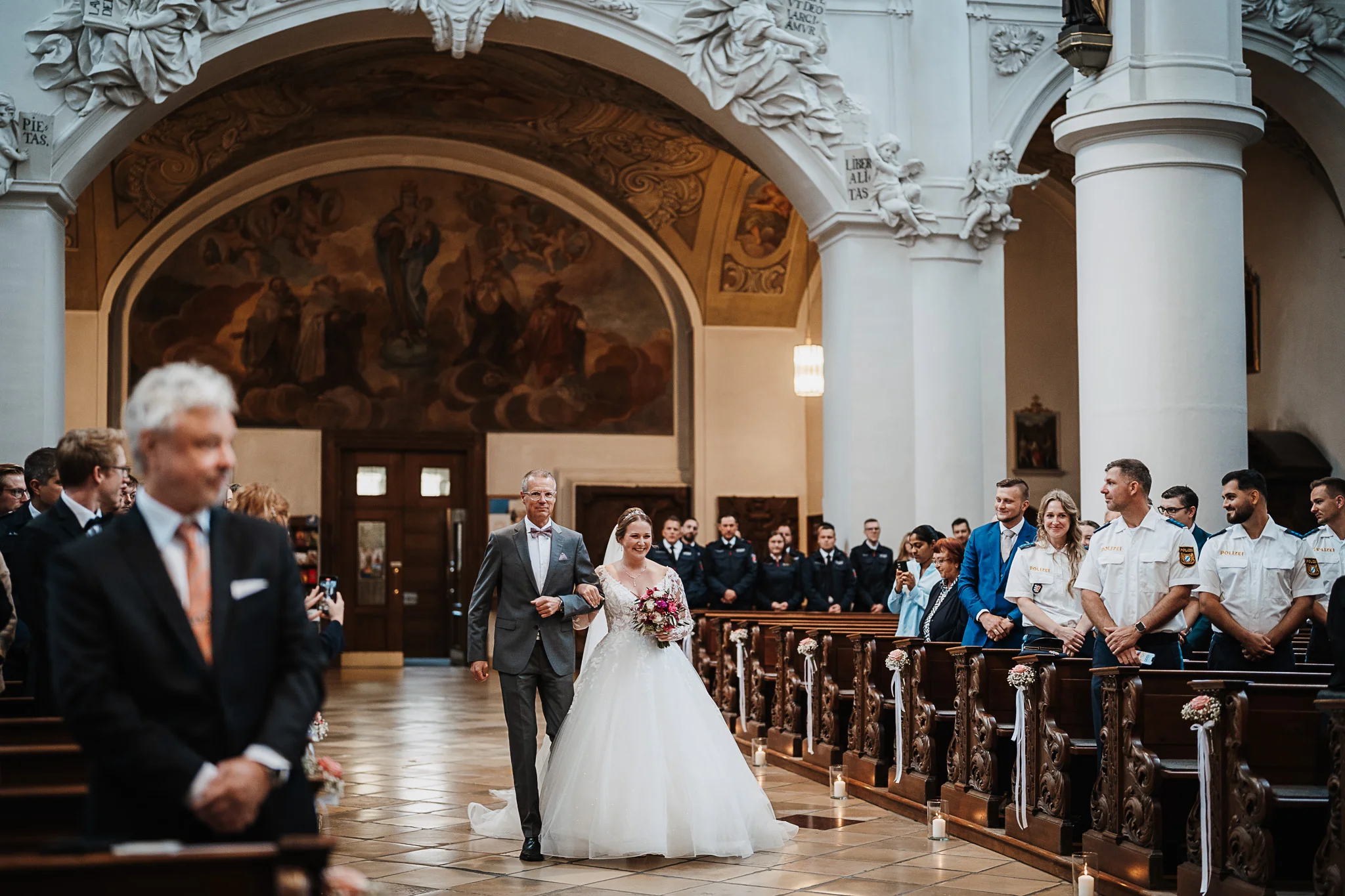 Eine kirchliche Hochzeit in Straubing hat einfach was ganz Besonderes. Diese ruhige, feierliche Stimmung, die Musik, das Echo in der Kirche… und dieser Moment, wenn ihr euch vorne gegenübersteht und plötzlich kurz alles um euch herum still wird.