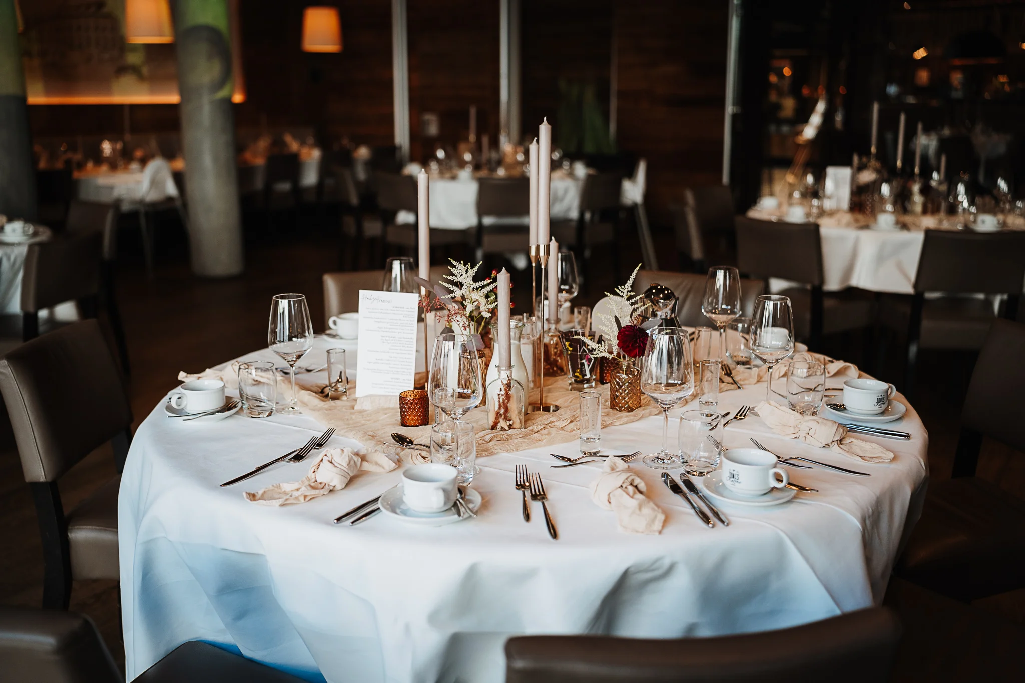 Egal ob freie Trauung oder Feier: Die Kombination aus modernem Design und gemütlicher Stimmung macht die Hochzeit im Tonis Straubing zu etwas ganz Besonderem. Gerade im Herbst entsteht hier eine ganz eigene Magie – wenn draußen die Blätter fallen und drinnen alles warm und einladend wirkt.